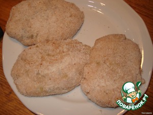 Обвалять котлеты в панировочных сухарях. Но они и без сухарей не разваливаются.