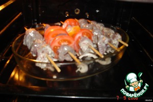 В холодную духовку на огнеупорную форму поместили шашлычки, как показано на фото.