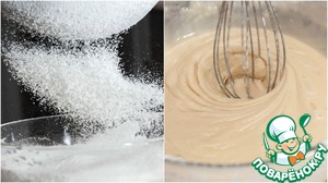 Яйца хорошо взбиваем с медом, солью и сахаром до светлой пышной массы.