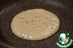 Хорошо разогреваем сковороду, затем убавляем огонь и жарим блинчики на сухой сковороде под крышкой (если тесто сильно прилипает, можно слегка смазать маслом с помощью салфетки) Переворачиваем оладушки в тот момент, когда пузырики на поверхности лопнули, а обратная сторона стала уверенного коричневого цвета.