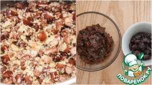 В измельчённую фасоль добавляем сахар, ванилин ждем пока сахар растворится и варим до загустения и карамелизации. Небольшую часть фасоли откладываем (если вы хотите, чтобы в пасте встречались кусочки фасоли), а оставшуюся перемалываем в блендере до однородной массы, затем соединяем её с отложенной фасолью. Этого количества пасты хватает на 2-3 сендвича.