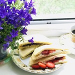 Сендвич из двух пышных блинчиков со сладкой начинкой - что еще нужно для идеального завтрака? Дораяки очень популярны в Японии, где почти во всех десертах используется анко - сладкая бобовая паста. Сами блинчики-оладушки пушистые, мягкие и ароматные (за счет добавления меда), а паста из фасоли имеет очень необычный вкус: по консистенции напоминает густое варенье или джем, присутствует запах фасоли, который непременно оценят любители японской кухни. Но можно использовать и более привычную начинку: шоколадную пасту, вареную сгущенку, ягоды со взбитыми сливками, джем... Или съесть просто так!
