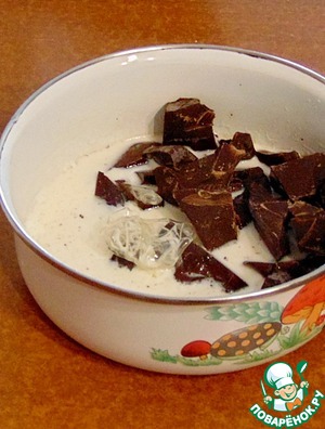Молоко довести до кипения, ввести отжатый желатин и порубленный шоколад.
