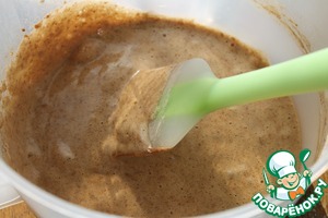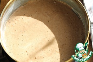 Взбиваем яйца с сахарам, они должны увеличиться в объеме в 2-3 раза. Добавляем муку с какао и вымешиваем тесто. -