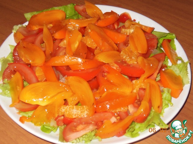 • И, наконец, кусочки хурмы. Я резала их тонко, не не мелко