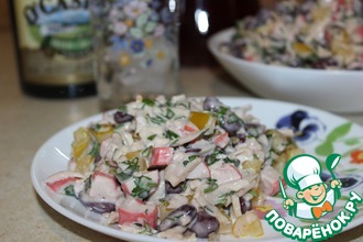 Этот салат зимним субботним вечером с удовольствием ела женская часть нашей семьи. Впрочем, вернувшаяся на следующий день с дачи-командировки-по ездки к маме на пельмени мужская часть, не отказалась от салата тоже. Пришлось повторить Присоединяйтесь к нам!!