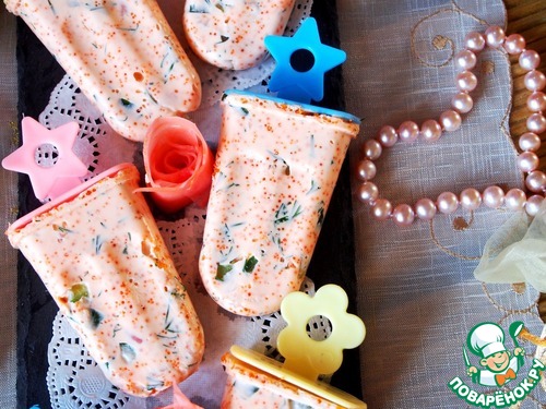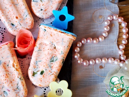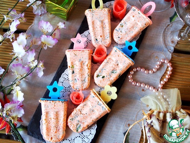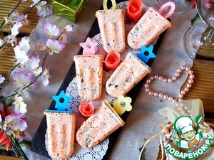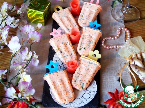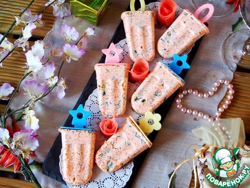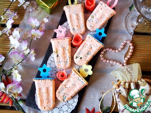 Данная закуска приготовлена в виде мороженого, что делает ее очень привлекательной и праздничной. К тому же она получается очень вкусной и нежной.