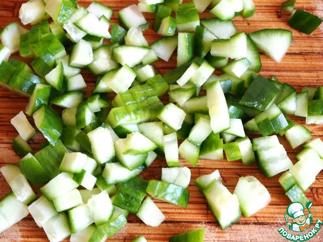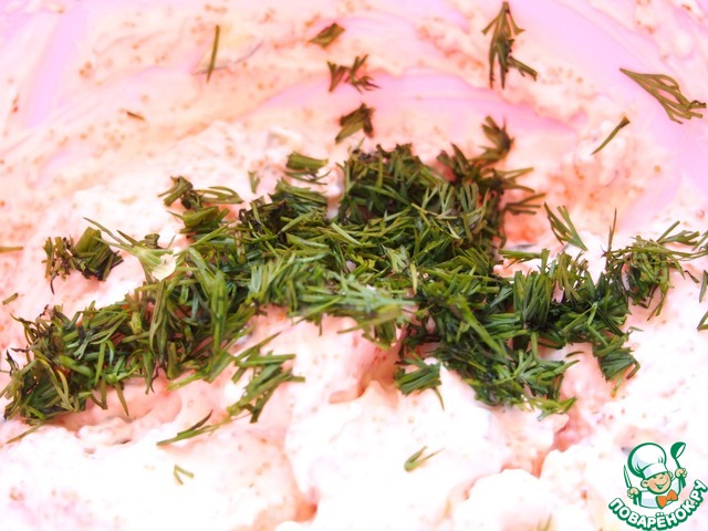 • Затем добавить, мелко нарезанный, укроп, хорошо перемешать.