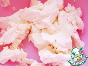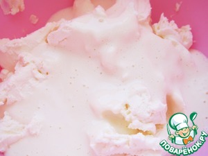 • В сливках развести желатин, согласно инструкции, и добавить к творожному сыру.