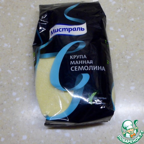 В тесто помимо муки будем добавлять манную крупу. У меня семолина от "Мистраль".