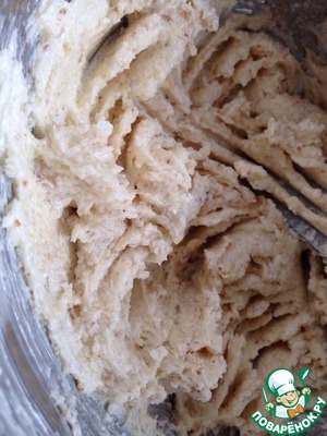 Сливочное масло растереть с сахаром, ванильным сахаром и щепоткой соли. Добавить молотый миндаль.