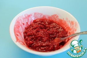 Ягоды разморозьте, если это нужно. Отложите несколько ягодок для украшения, остальные разомните вилкой в не очень однородное пюре.