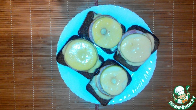 • Через 3-4 минуты достаем наши бутерброды, наливаем себе большую кружку горячего чая и... Приятного аппетита!