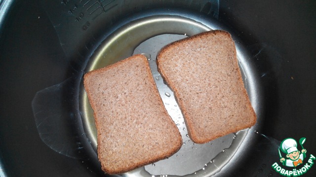 • В чашу мультиварки или на сковороду добавляем растительное масло, и кладем хлеб, что бы он слегка подрумянился