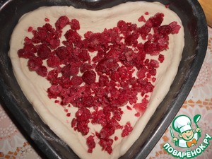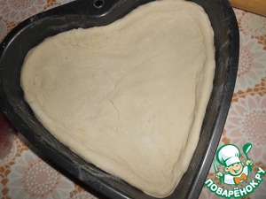 Тесто раскатать и выложить в форму для запекания в виде сердечка.