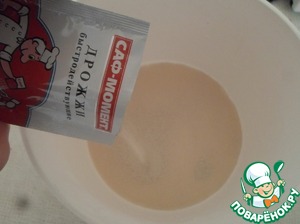 В теплом молоке разводим дрожжи и сахар. Ставим в тёплое место, для образования пенной шапки.