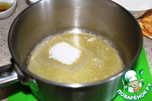 Растопила сливочное масло и добавила к нему сахар, размешивала до полного растворения крупинок сахара.
