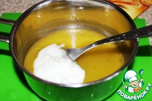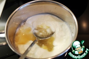 Для приготовления крема, я подогрела йогурт (не дать свернуться), добавила мед.