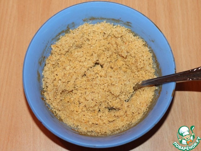 10. Сливочное масло растопить и смешать с печеньем, измельченном в блендере. Масло можно немного прибавить, все зависит от печенья, маслянистое или нет.