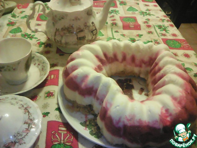 Украшаем по желанию! Я украсила растопленным белым шоколадом, смешанным с 3 ст. л. сока брусники. Приятного аппетита!