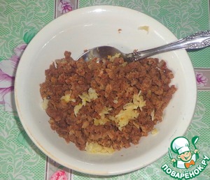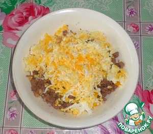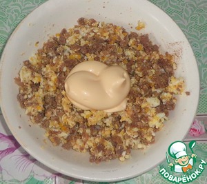 Отварные тертые яйца добавить в паштетную массу и перемешать.