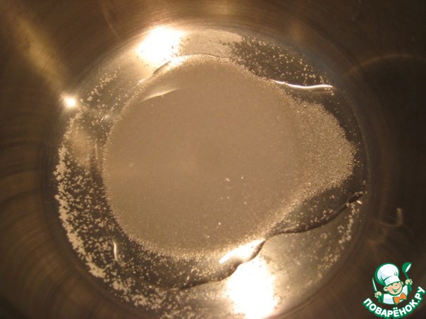 Приготовить сахарный сироп: в сотейнике растопить сахар в воде.