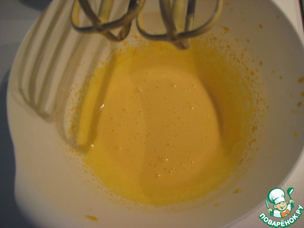 Яичные желтки взбить миксером, не переставая взбивать влить тонкой струйкой сахарный сироп, взбить до увеличения массы в объеме.