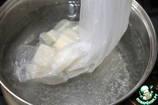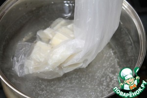 Опускаем в кипящую воду и достаём - делаем так, пока сыр не расплавится.
