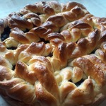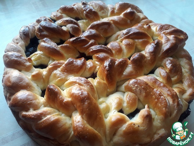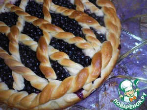 Чернику перемешать с сахаром и ванильным сахаром. На раскатанный пласт выложить черничную начинку. Вверх пирога оформить косичками. Дать расстояться 20 минут. Смазать пирог яичным желтком.