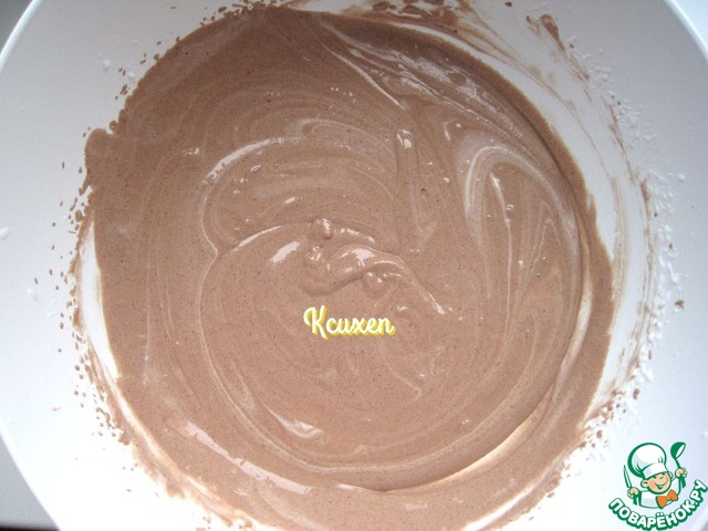 Шоколад выложим в небольшую миску. Ещё горячую молочно-желатиновую смесь через ситечко выльем на шоколад. Всё перемешаем до полного растворения шоколада. Если молочная смесь успела остыть и шоколад плохо растапливается, смесь можно немного подогреть на водяной бане (НЕ КИПЯТИТЬ!!!).