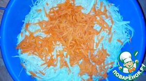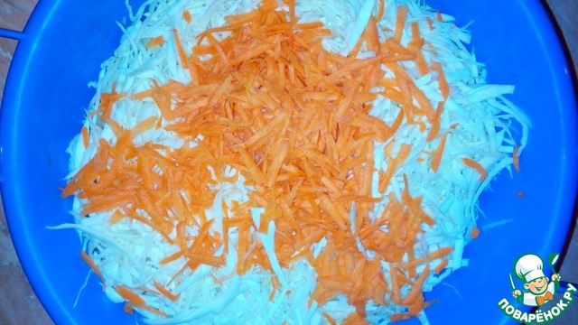 Капусту шинкуем, кому как нравится, желательно конечно не сильно крупно и складываем в отдельную емкость большого объема.