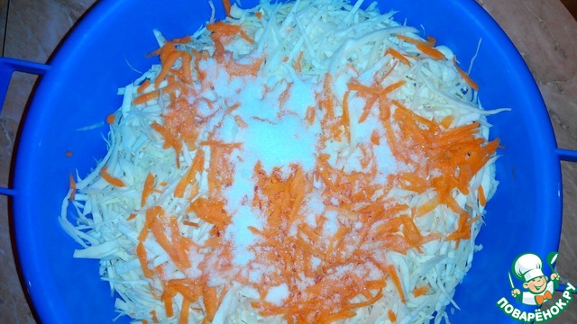 Ни для кого не секрет, что квашеная капуста самый богатый источник витамина С. Лимоны, апельсины и прочие цитрусы в подметки не годятся. Квасить в промышленных масштабах не позволяют условия (хранить негде) поэтому квашу периодически, по мере употребления. Рецепт мой собственный, как говорится выверенный эмпирическим путем, то есть методом проб и ошибок. И как говорил один мой сослуживец: "Капустка-это такая закуска, поставить на стол-не стыдно, и сожрут-не жалко!" Слова автора, а из песни, как говорится слов не выкинешь.
