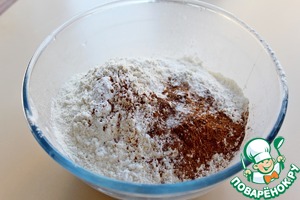 Просеять в миску муку, соль, разрыхлитель, корицу, мускатный орех и молотую гвоздику.