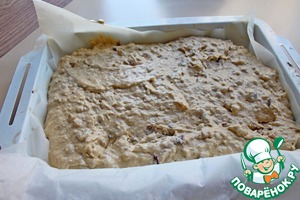 Выложить тесто в форму выстеленную пергаментом и выпекать около 1 часа до сухой лучинки.