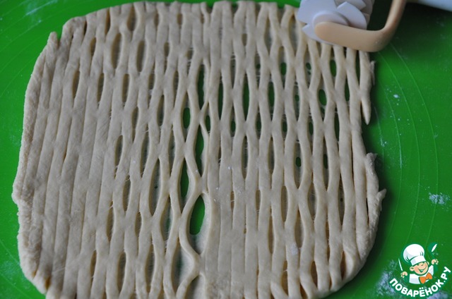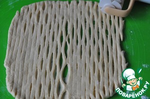 Из оставшегося теста делаем любое украшение, я сделала решётку.