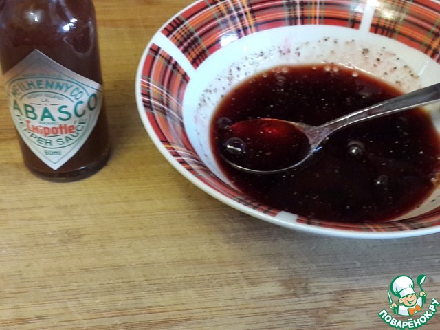 Для маринада смешайте брусничное варенье, табаско, перец и соевый соус.
