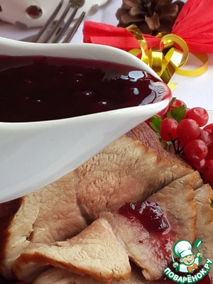 Готовое мясо подавайте, нарезав тонкими ломтиками. В качестве соуса рекомендую брусничное варенье!!!
