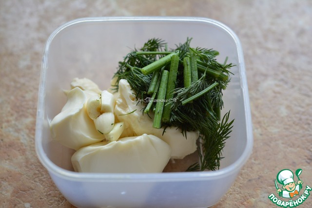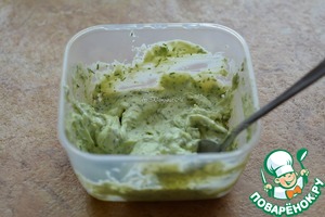 • Сыр пробить блендером с чесноком и укропом;