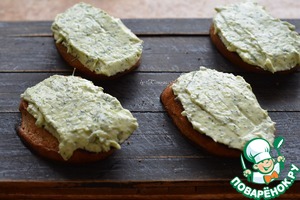 • Тосты помазать сливочно-чесночной массой;