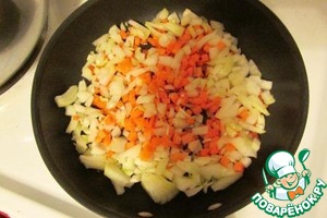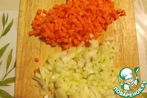 • Пока варится бульон, морковку и луковицу нарезаем очень мелким кубиком.