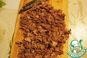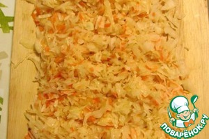 • Квашеную капусту отжимаем от рассола и рубим мелко.