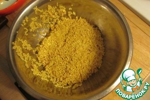 Пшено тщательно промываем холодной водой, потом заливаем крутым кипятком, сливаем через сито.