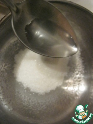 Сахар смешать в 3ст. л. воды и прокипятить.