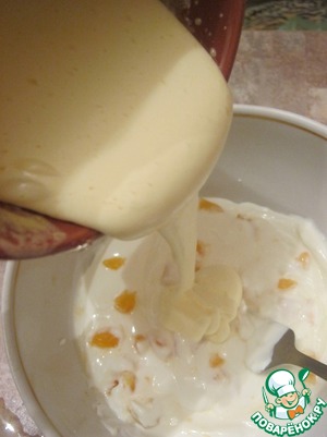 Желтки взбить и влить туда при помешивании сахарный сироп, слегка его охладив. Взбивать до полного остывания. После этого охладить в холодильнике 30 минут.