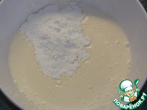 Добавляем соду и муку. Всё взбиваем.
