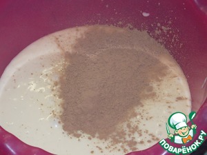 Во вторую часть теста добавляем какао. Взбиваем.