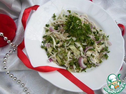 Я безумно люблю рыбу в любом виде. А мои мужчины обожают салат из капусты, огурца и лука. Вот я и соединила две любви воедино.