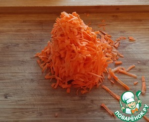 Сочную сырую морковь натрите на тёрке.