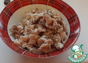 Отварную курицу нарежьте.