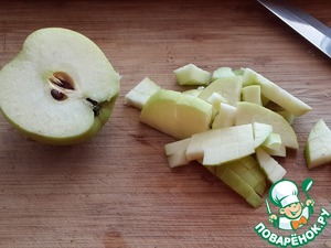 Нарежьте кубиками зеленое яблоко.